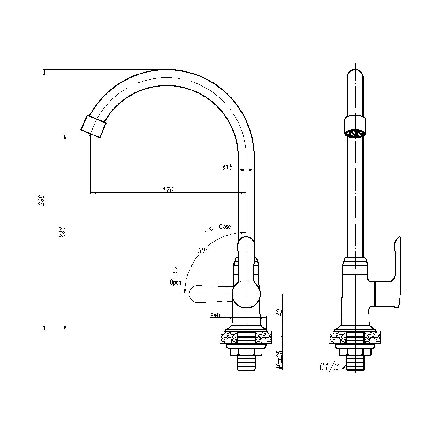 PILLAR MOUNTED KITCHEN TAP SRTWT5848-GY